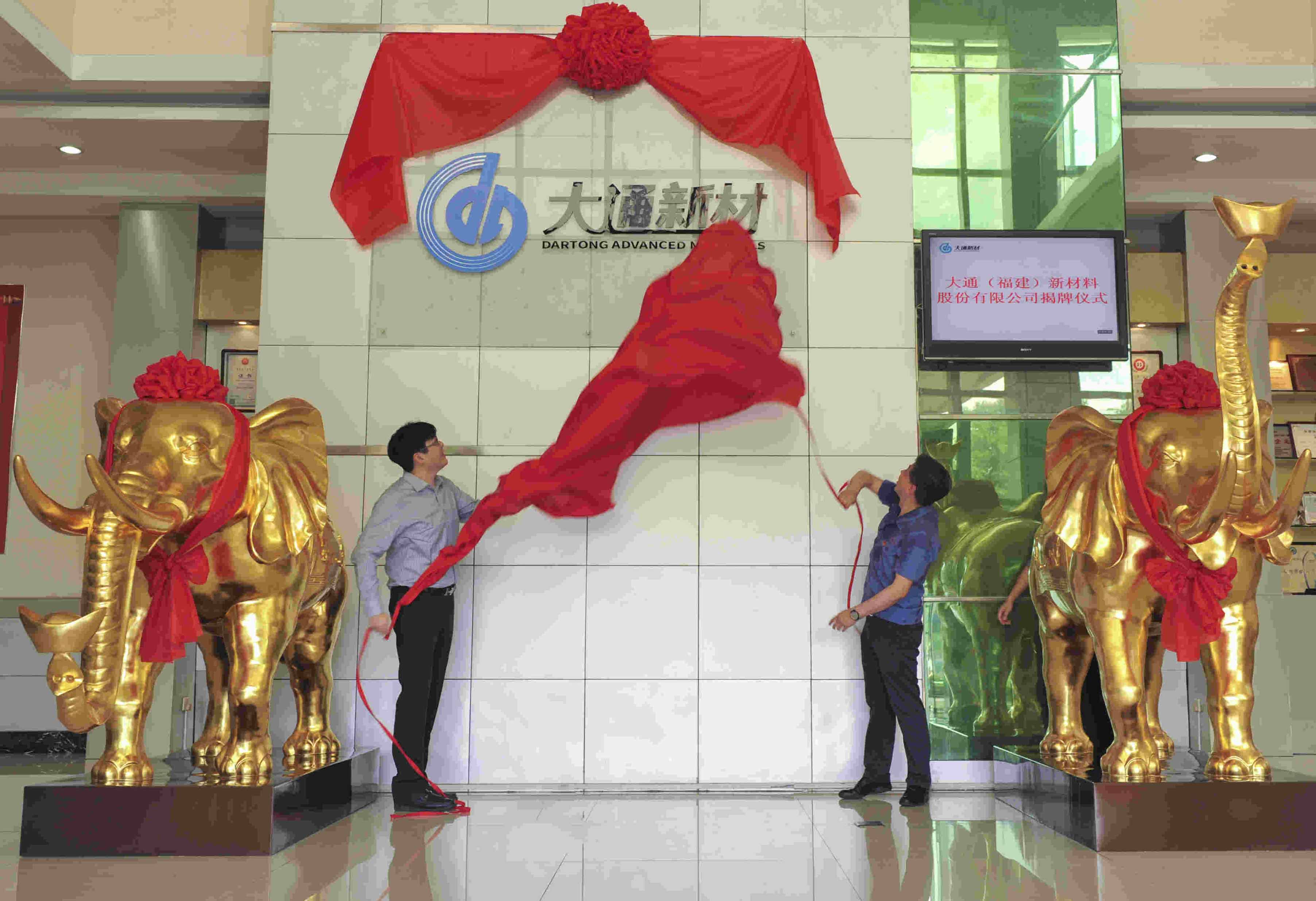 最后,大通新材董事長韓孝煌、總經理陳曦共同為新公司揭牌。公司正式更名為大通(福建)新材料股份有限公司,是大通完成股份制改造,推進資產證券化,優化發展戰略,提高競爭力的重要舉措,標志著大通新材從此邁入新時代,踏上新征程。攀登永無止境,奮斗未有窮期,讓我們共同期待,大通新材繼往開來,奮發有為,迎來一個姹紫嫣紅的春天!