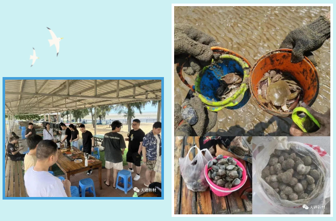 去年夏天我們走進莒溪,追風拾野,聆聽大自然的呼聲;今年踩著春天的尾巴,我們向大海進發,踏浪聽海,領略海濱風光。五月的海邊,還未有咄咄逼人的熱浪,大家三五成群結伴漫步,或歡快拍照留念,或相互交流聊天,不論是夏末的山林還是春末的海灘,都留有大家歡快的身影。歡樂的團建又怎么能少得了美食環節呢?海邊BBQ似乎格外誘人,大家圍坐在燒烤架前,化身“燒烤大師”,洗菜、切菜、燒烤,輪番上陣、互相投喂,周末最愜意的時光,莫過于此!一番美食過后,大家便迫不及待地拿上趕海裝備,灘涂趕海、撿螺拾貝,在潮起潮落間,收獲滿載而歸的喜悅!