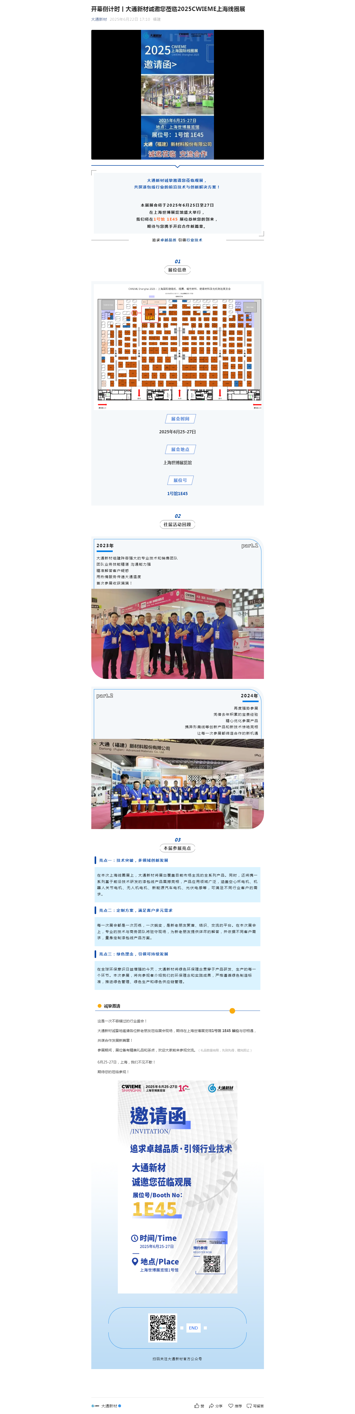 就在明天|CWIEME上海國際線圈展,大通新材在1E45展位等您!2025-06-22